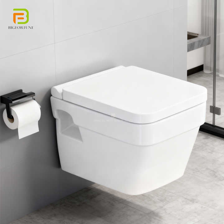 WC mural carré de style européen, WC suspendu mural, WC suspendu, WC en céramique flottant pour salle de bain