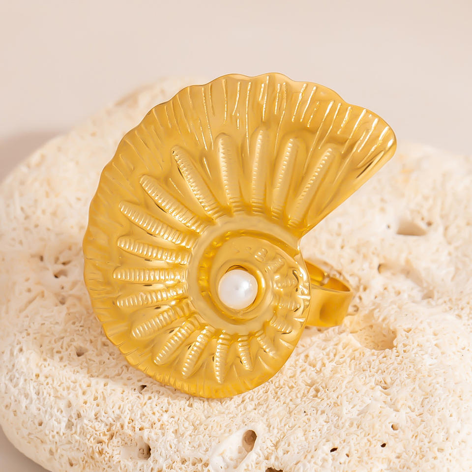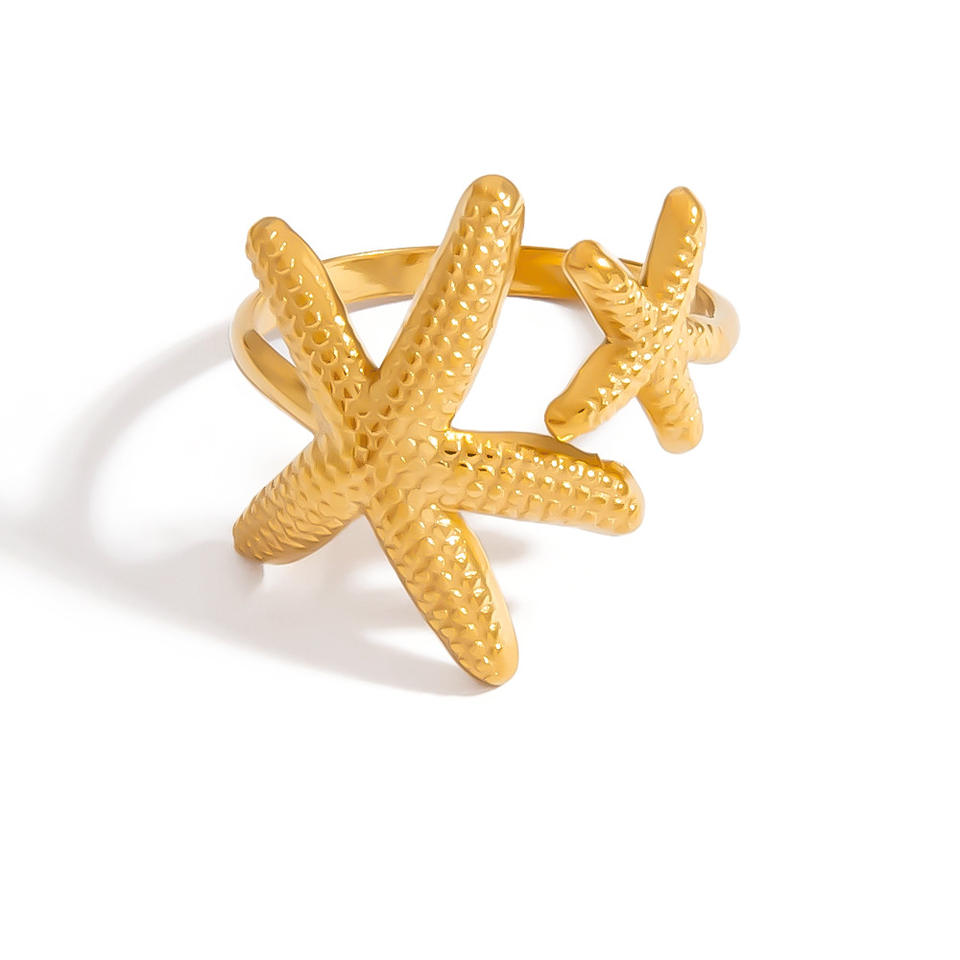 Bague en acier inoxydable de style européen, design coquillage et étoile de mer, plaqué or 18 carats, ouverture réglable, bijoux de mode pour femmes