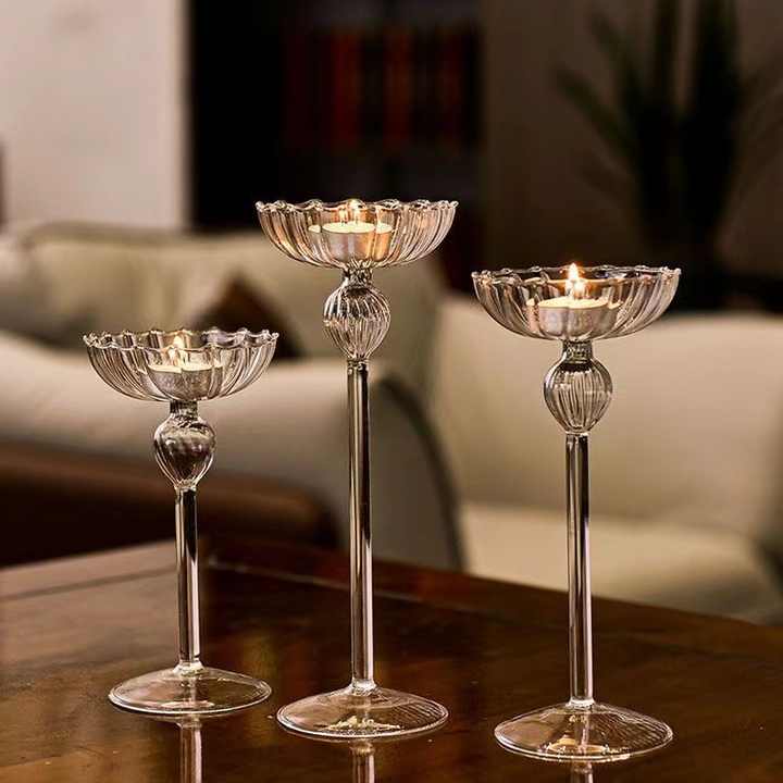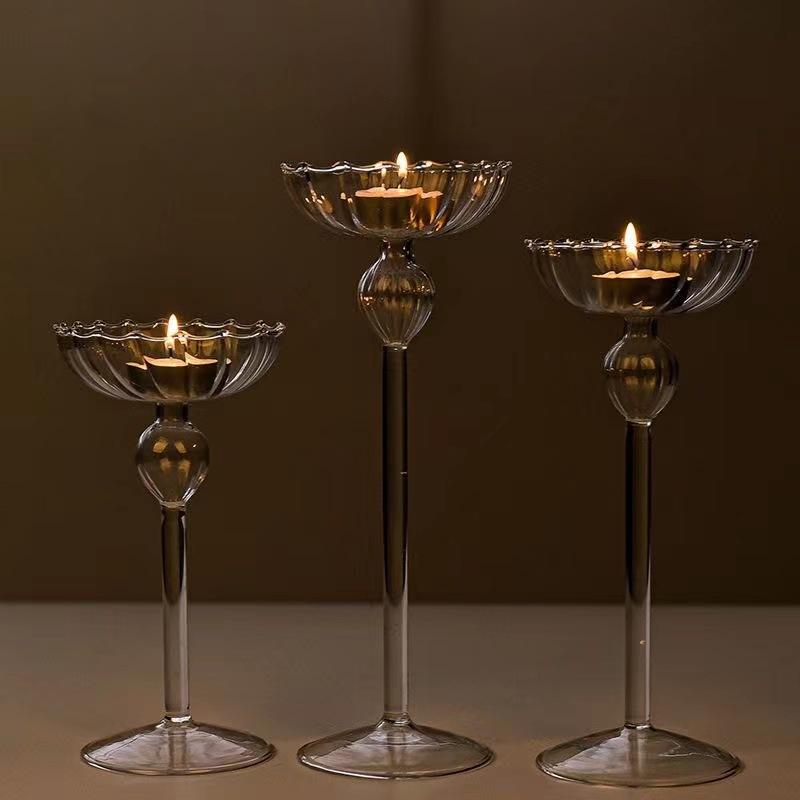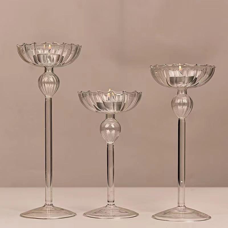 Candélabre en verre rayé de style européen, décorations romantiques pour la maison, ornements pour dîner aux chandelles avec des pots à bougies