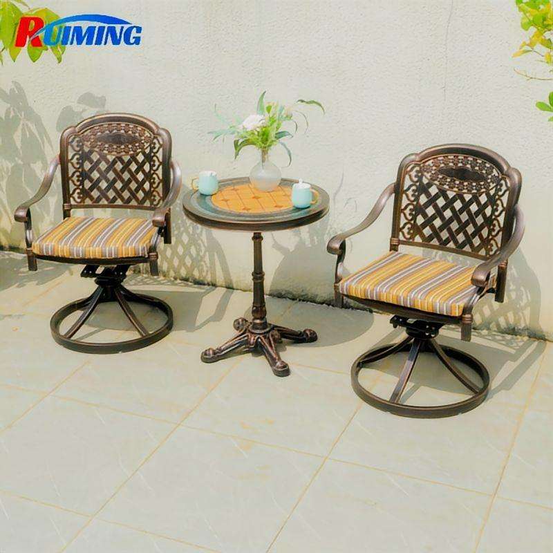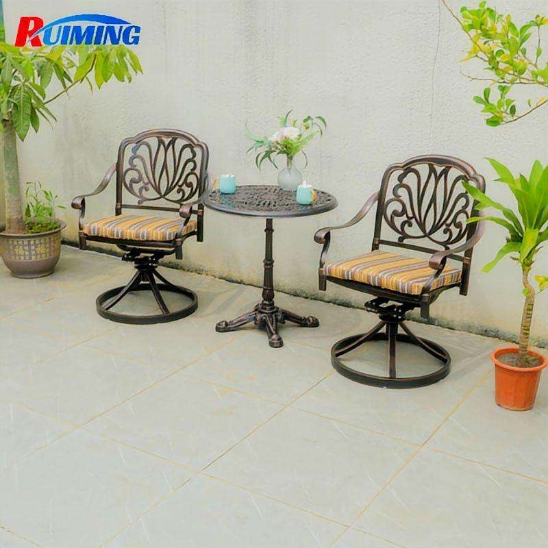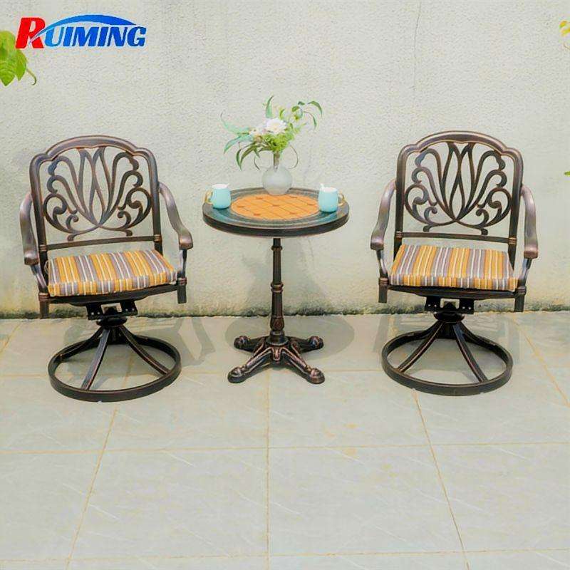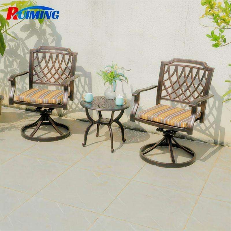 Chaises de style européen pour l'extérieur, le jardin et la terrasse, chaises pivotantes de loisir en fonte d'aluminium et table ronde, ensemble de trois pièces