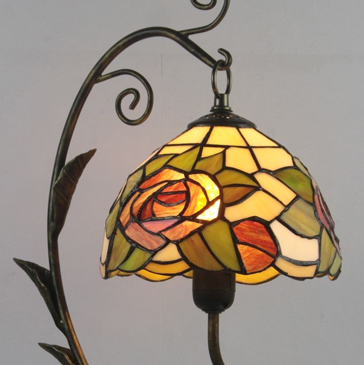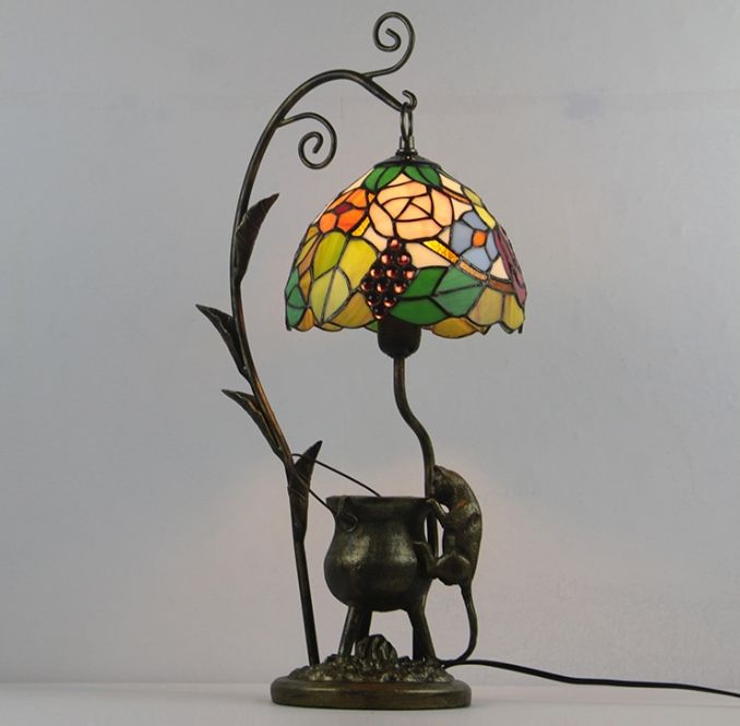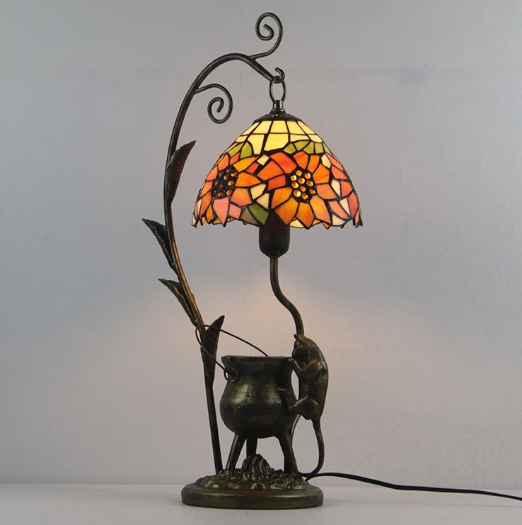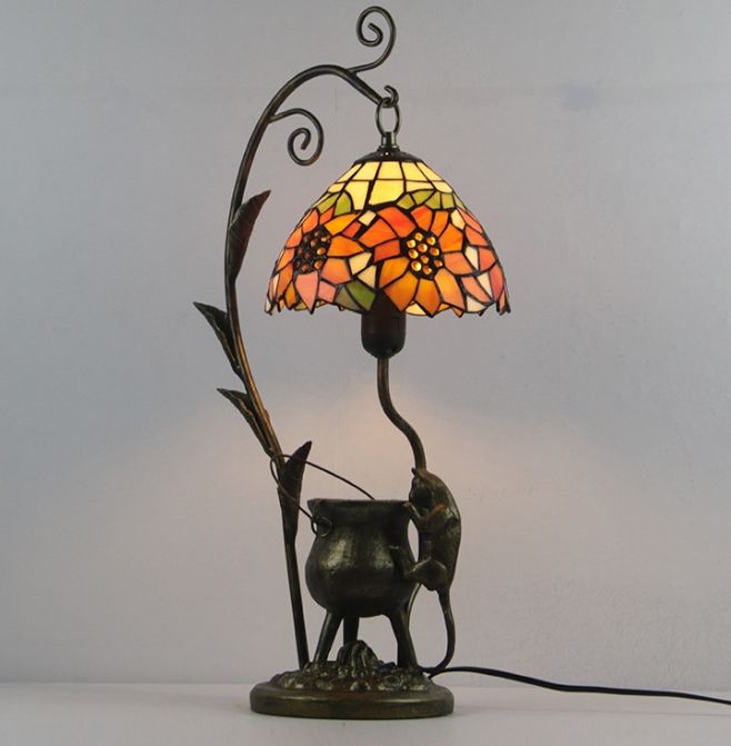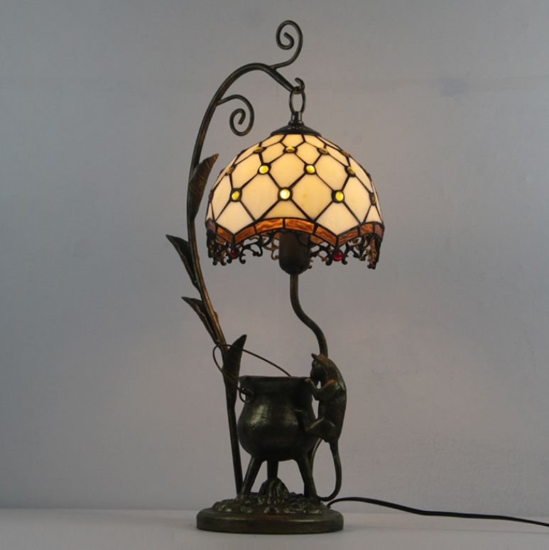 Lampe de table européenne Style Tiffany Lampe d'appoint en vitrail Base en résine Veilleuse Décoration intérieure en verre teinté Lampe papillon