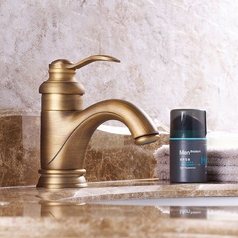 Robinet de lavabo en laiton de style traditionnel européen, monocommande, à montage sur comptoir, avec valve en céramique à débit contrôlé, pour salle de bain et chambre, mitigeur d'eau