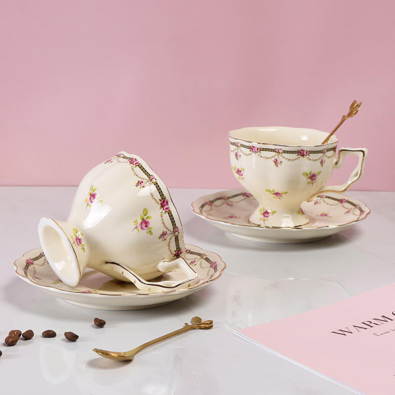 Service à café et à thé en porcelaine rose vintage européen Design de thé de l'après-midi anglais élégant grande tasse avec cuillère pour lait à usage domestique