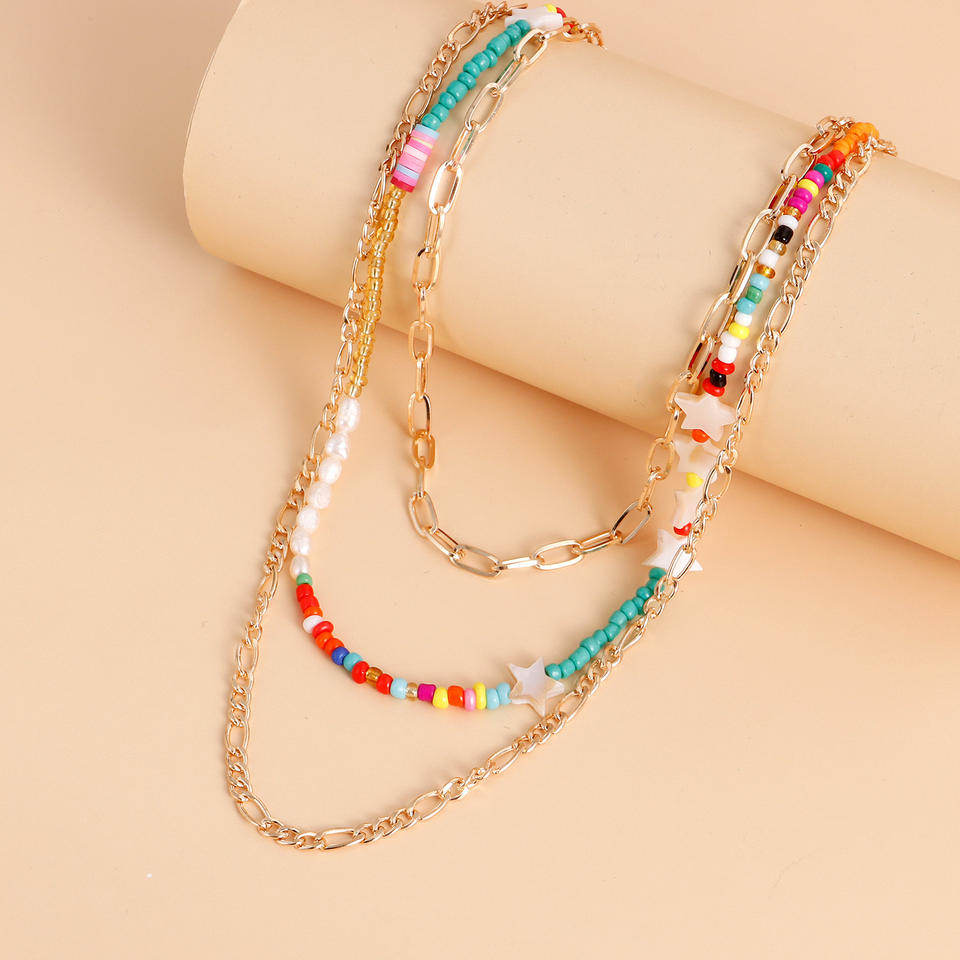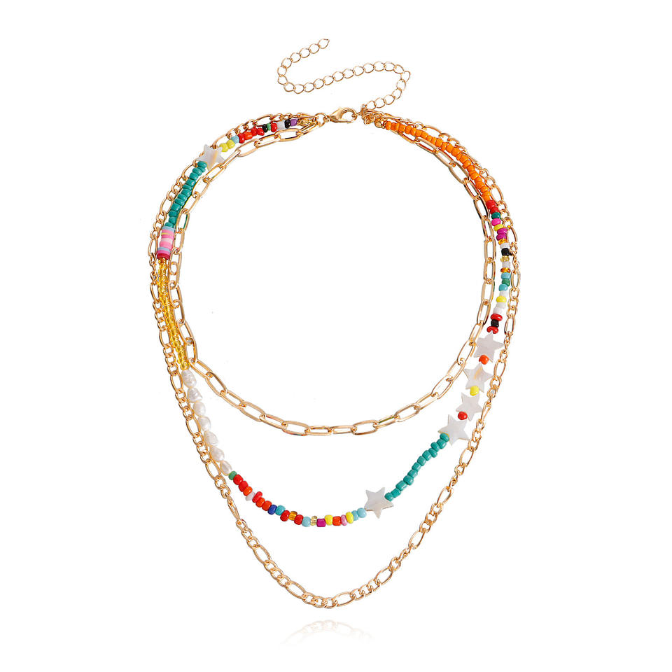 Bijoux transfrontaliers européens et américains Tendance bohème Collier pentagramme à perles colorées multicouches Design unique