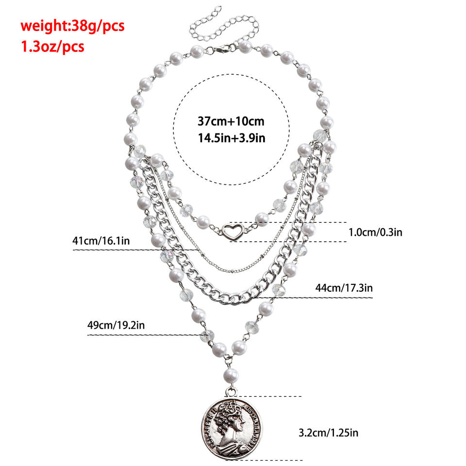 Bijoux transfrontaliers européens et américains multicouches coeur imitation perle pendentif rond pour femmes Vintage perlé Niche Choker