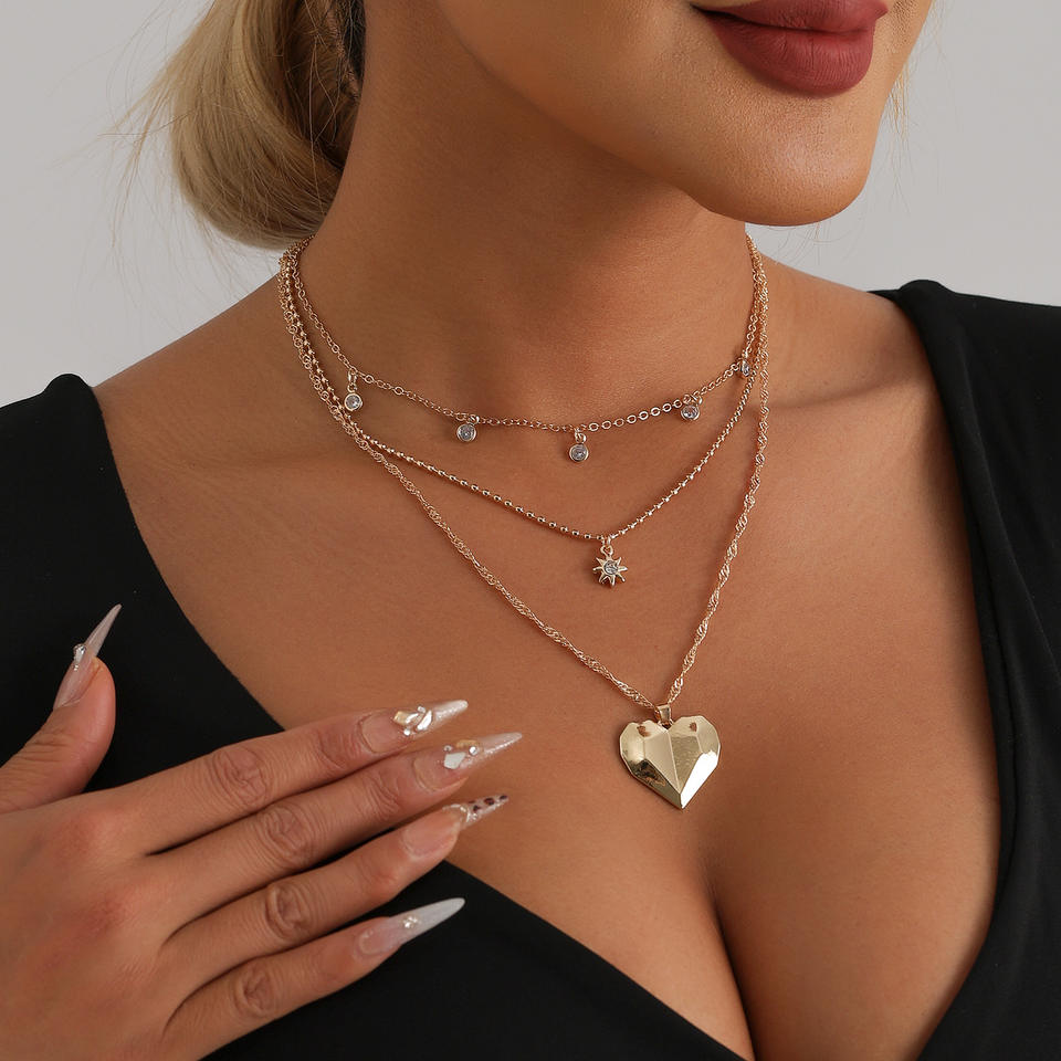 European and American Cross-Border Jewelry INS Bohemian Fashion Retro Style Heart Shaped Sparkling Dia Water Drop Collarbone