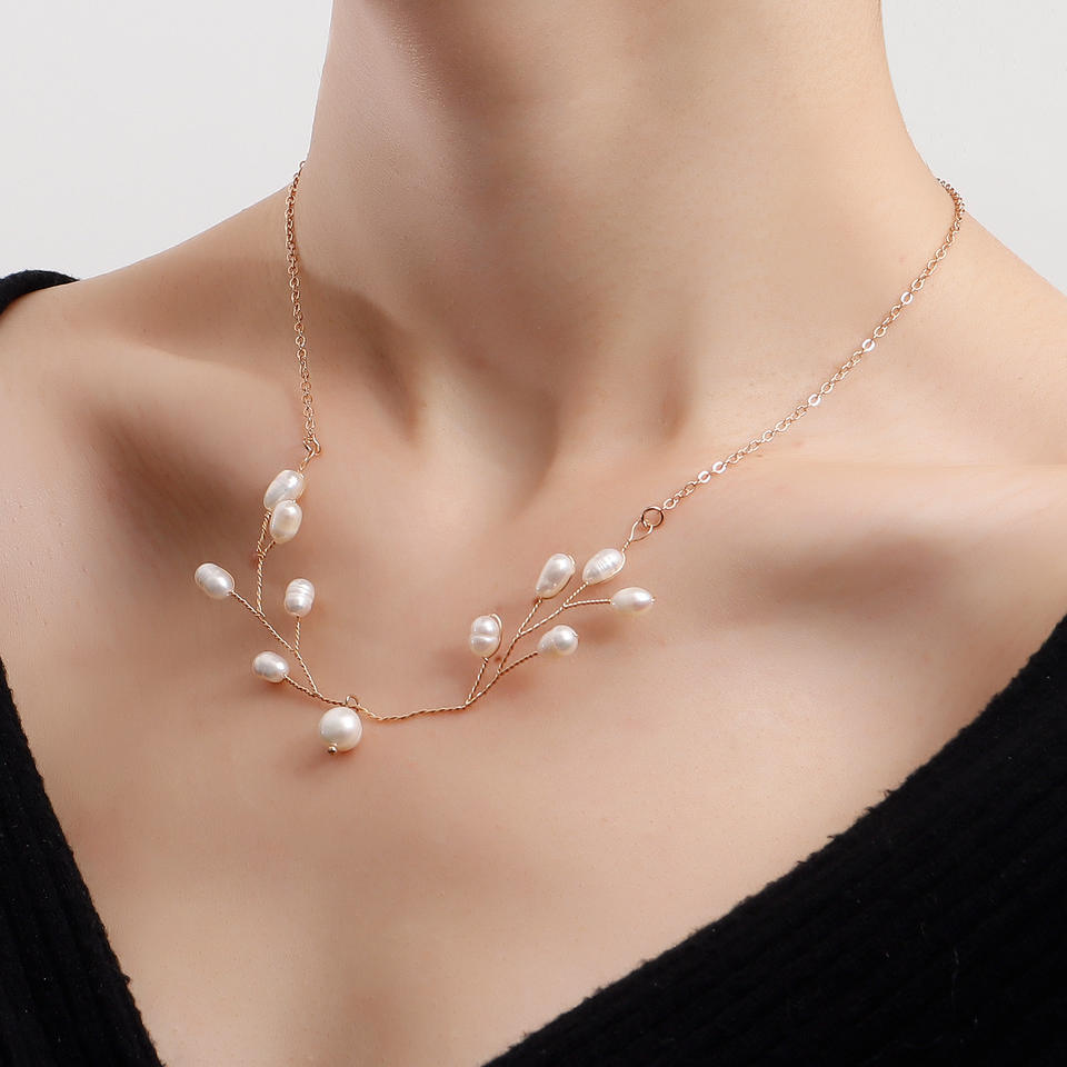 Bijoux transfrontaliers européens et américains Simple branche tissée à la main perle d'eau douce pour les femmes sens de la conception de niche pastorale