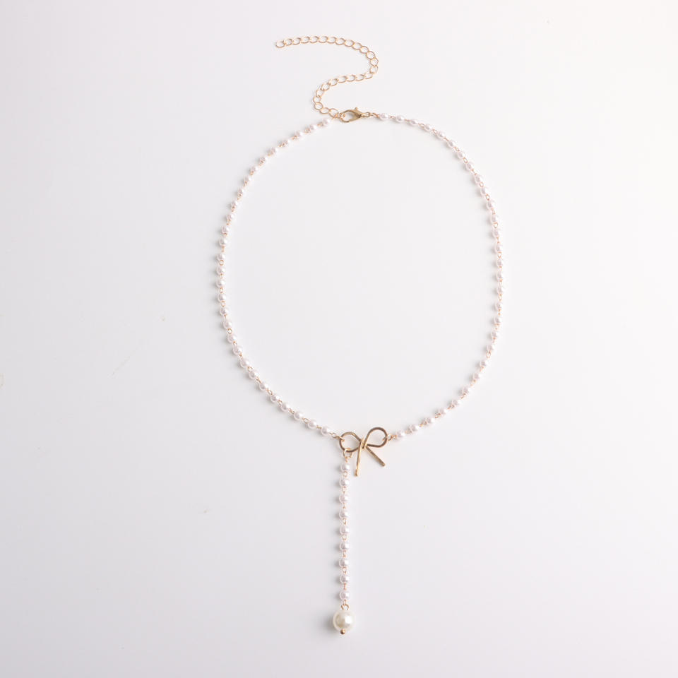 Collier pour femme en alliage de bijoux transfrontalier européen et américain, nœud papillon, perle, pendentif à glands, simple, élégant, tendance