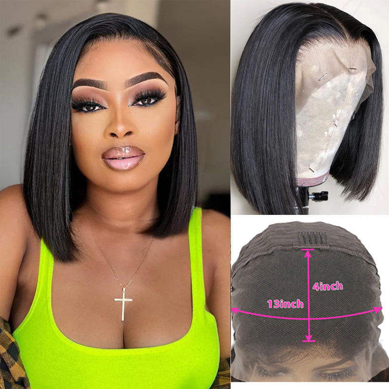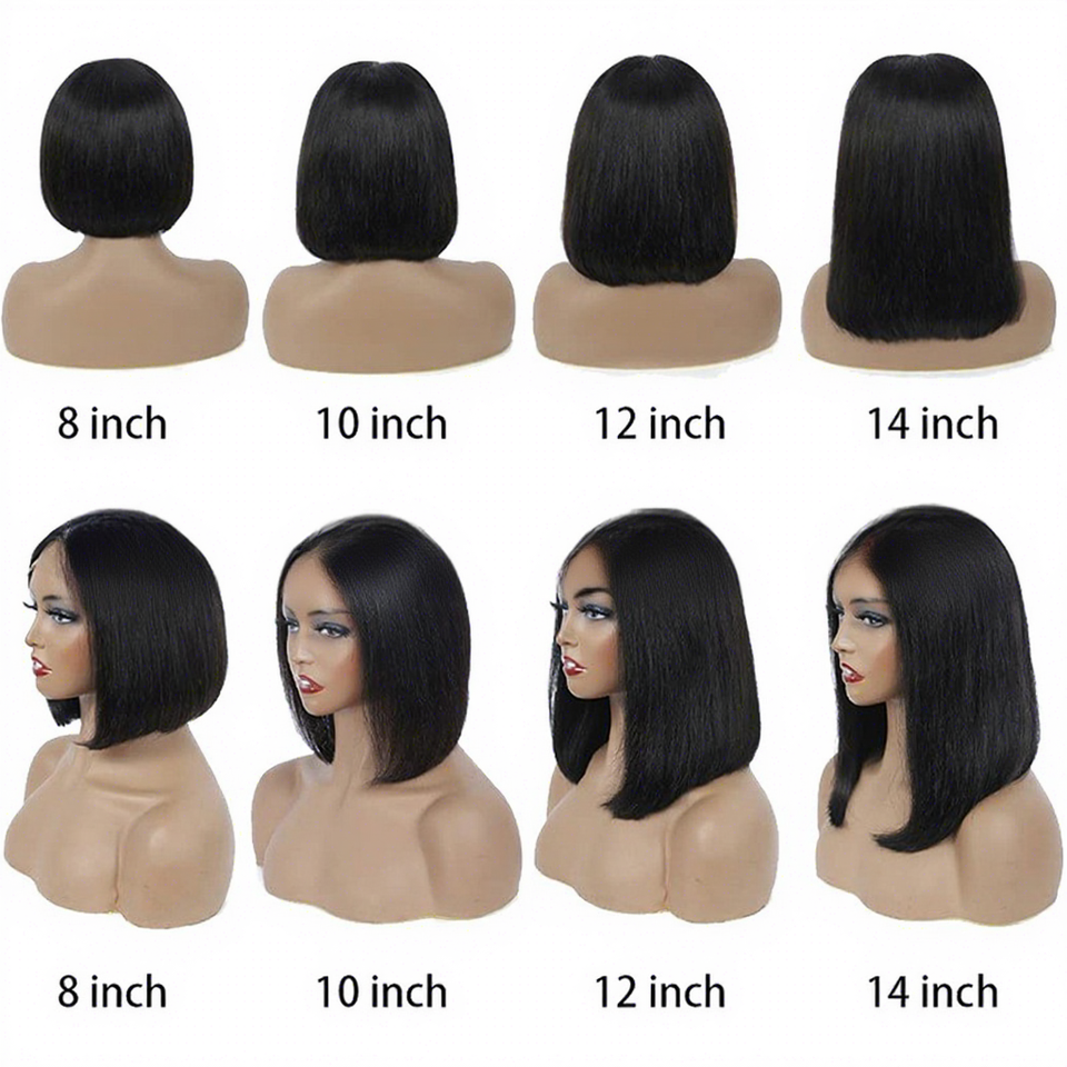 Perruque Bob Lace Frontale en Cheveux Humains Européens et Américains, 8-14 pouces, Densité 150-180%, Style Noir, Peut Être Permanente et Teinte