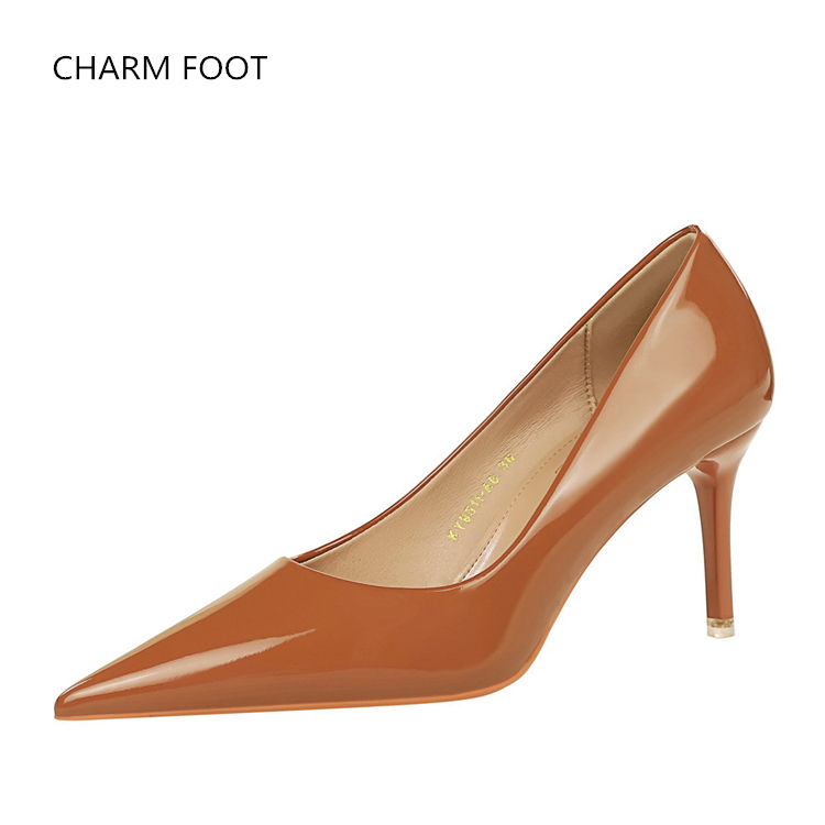 European and American Fashion Simple Thin Heel High Heel Shiny Patent Leather Shallow Pointed Women's Shoes