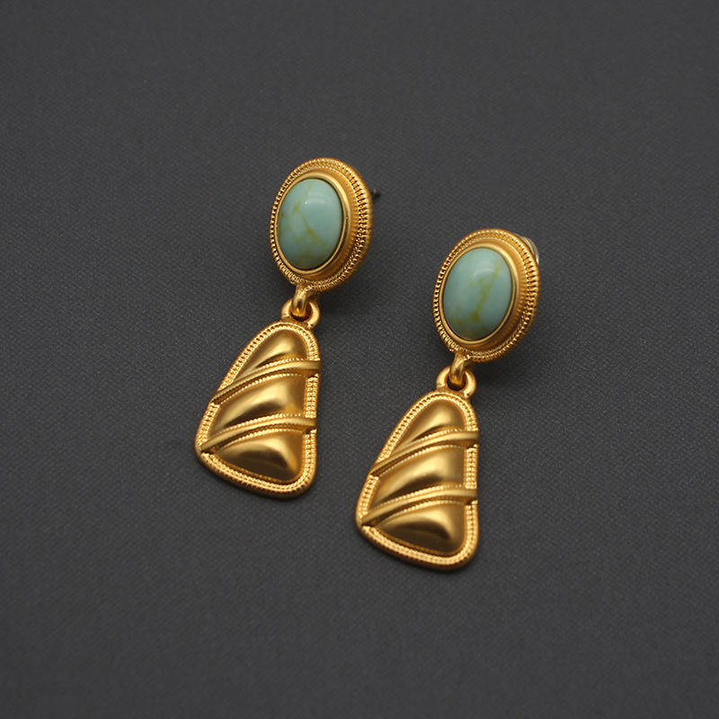 European and American Niche Copper Jewelry Retro Series Stone Necklace Earrings Set Aged Geometric Vint for Gift