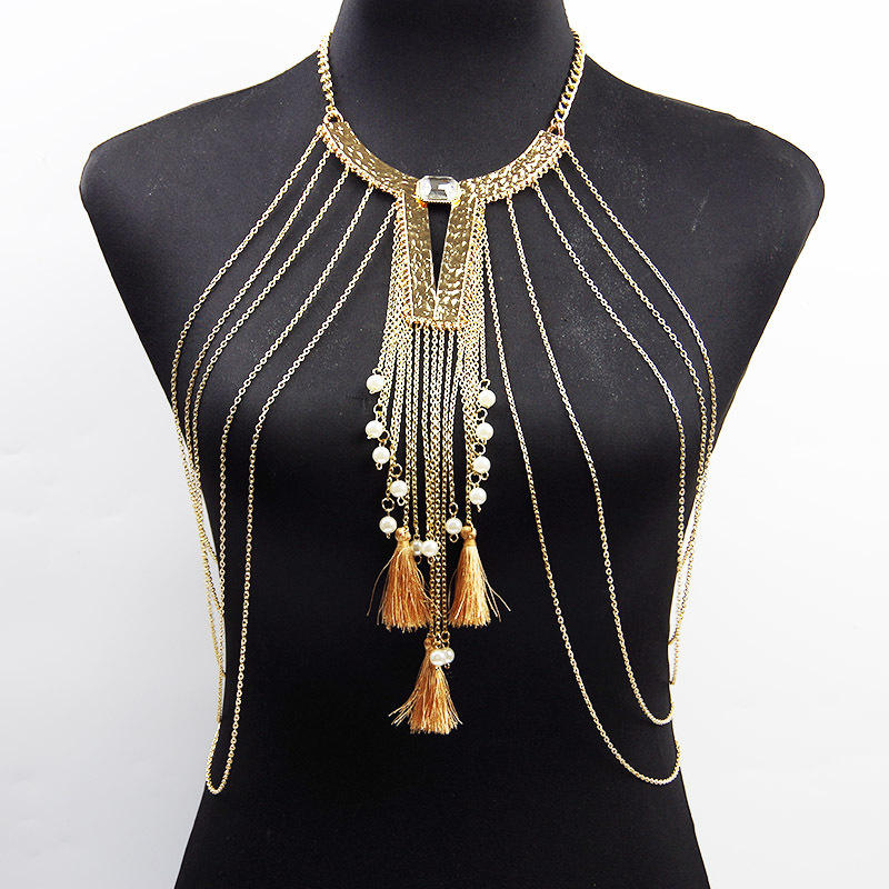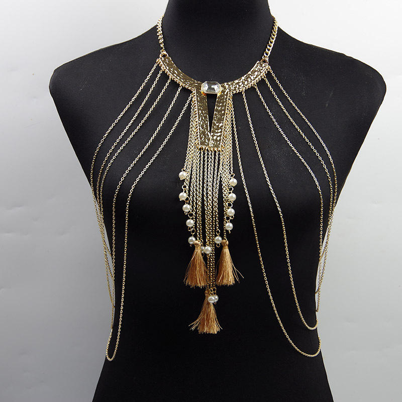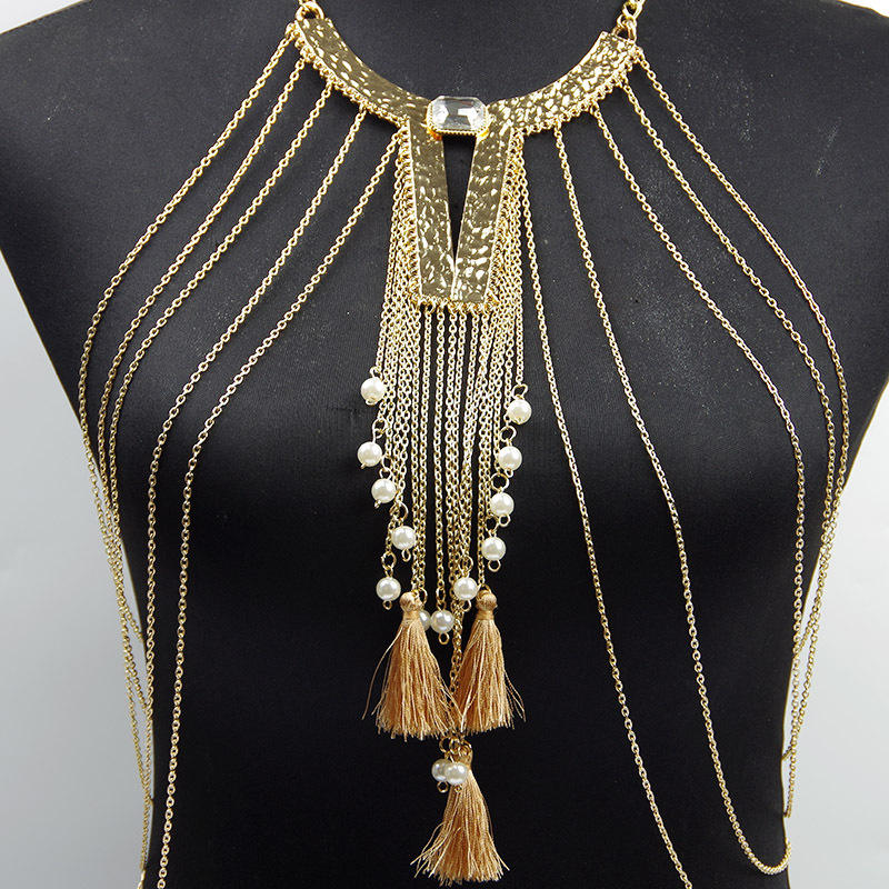 Bijoux fins pour femmes, lingerie en cristal rétro européenne et américaine, exagérant la poitrine, personnalisée avec des glands de perles