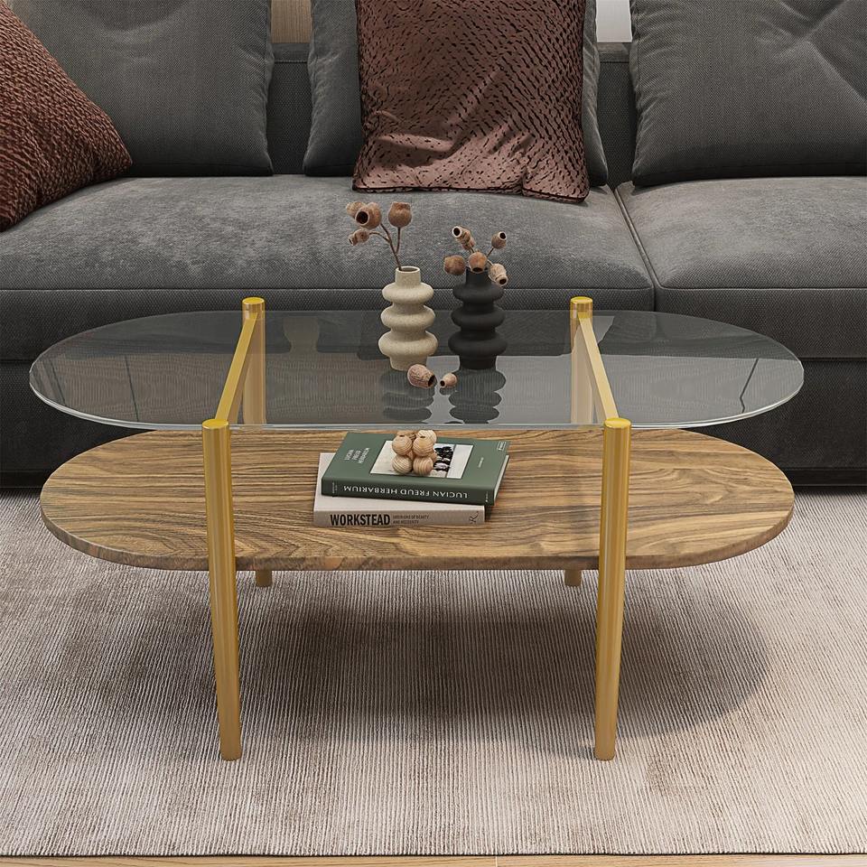 European and American Simple Modern Eco-Friendly Gold Coffee Table Small Apartment Living Room Light Luxury Glass