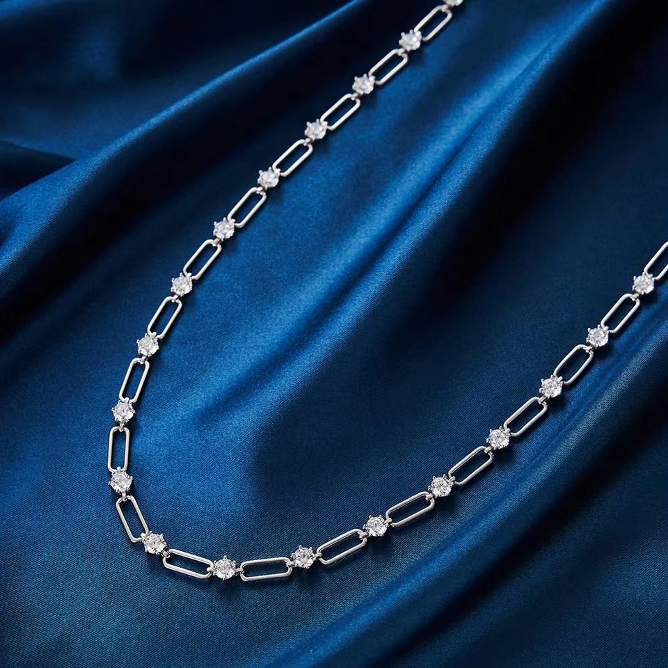 Européen et Américain Empilé Diamant Rond S925 Argent Trombone Collier Clavicule Chaîne Bijoux De Mariage