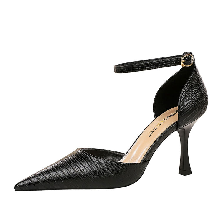 Sandales à talons hauts de style européen et américain à motif en bois rétro pointu avec une ligne évidée pour femmes