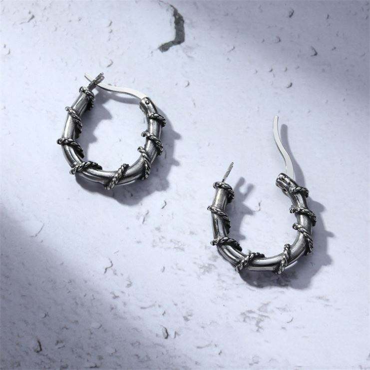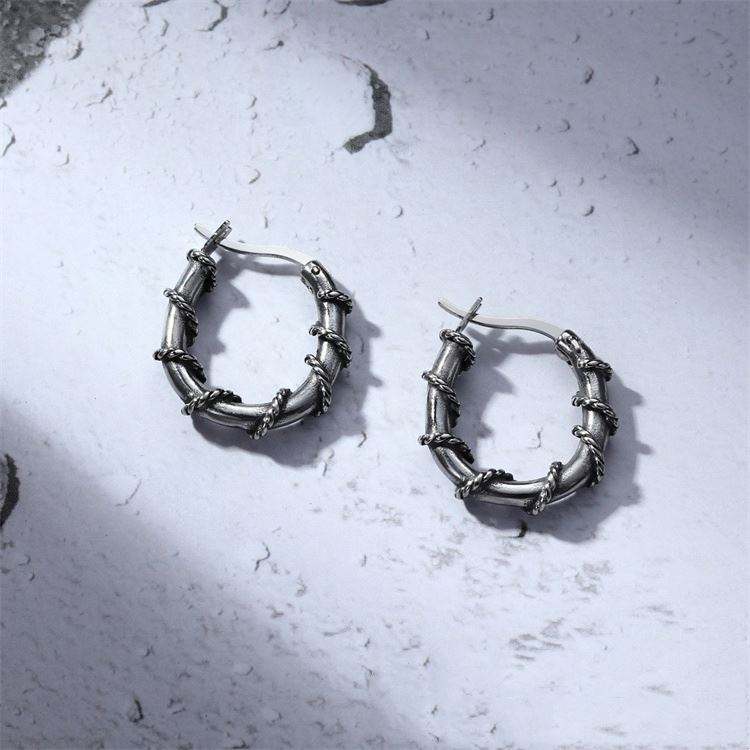 Boucles d'oreilles en acier inoxydable en rotin vintage européen et américain Boucles d'oreilles rondes à la mode Boucles d'oreilles en acier au titane