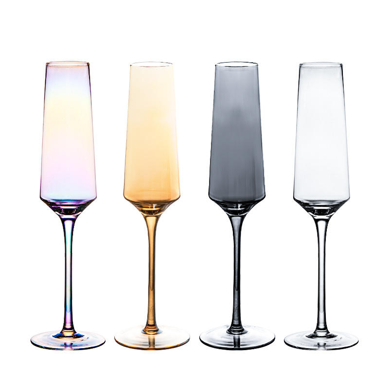 Verres en cristal de style européen, gobelets colorés, verres à dessert ambrés fumés, flûtes à champagne, ensemble cadeau de 2 pièces, emballage en mousse