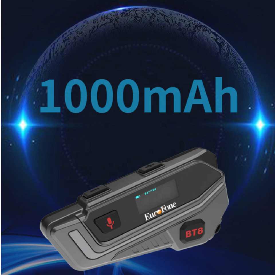 Casque de moto Europhone BT8 mains libres Bluetooth pour 2 motards, interphone, intercomunicadores, prise en charge de la langue rapide