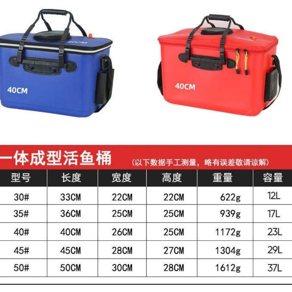 Seau de pêche épaissi en EVA, boîte à poissons vivants moulée d'une seule pièce, 30cm 40cm 45cm 50cm, sac à poissons multi-usages à coque rigide