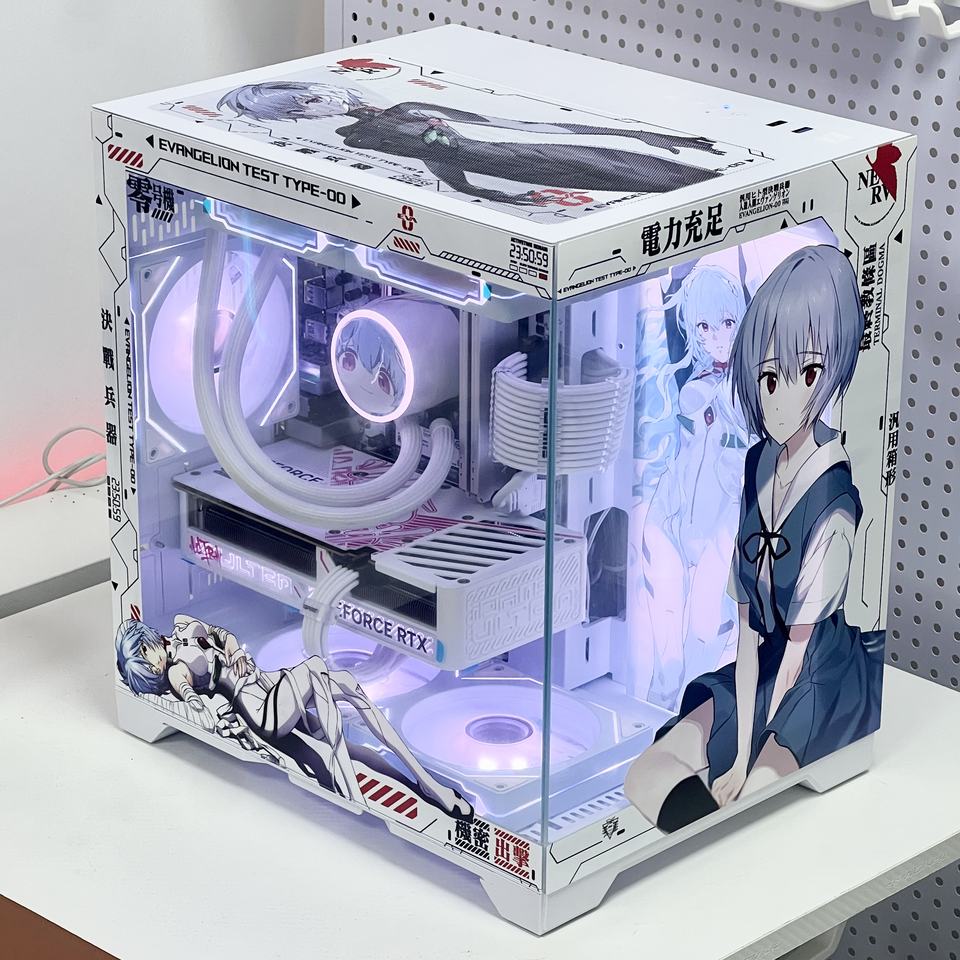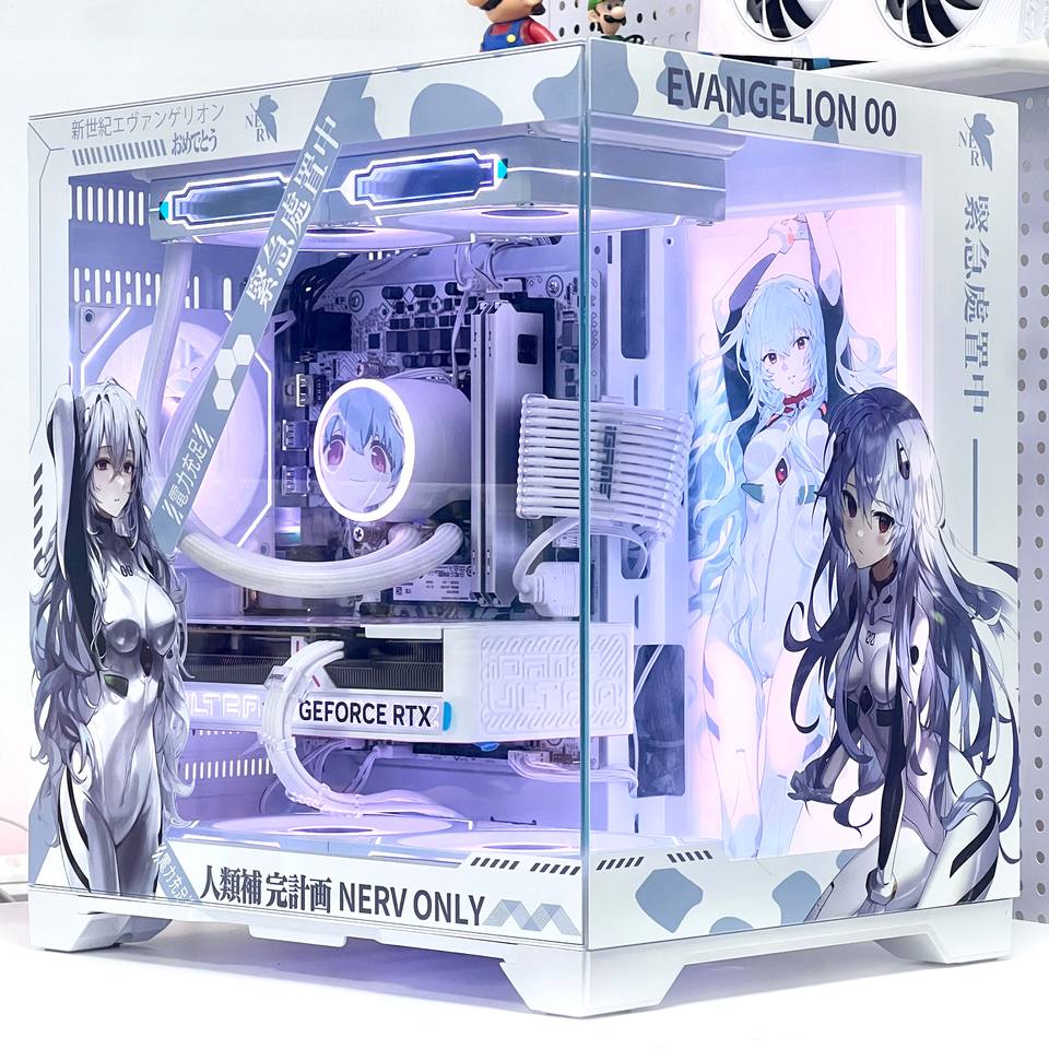 Boîtier d'ordinateur Mid-Tower personnalisé DIY Evangelion Ayanami Rei en métal, compatible avec système de refroidissement liquide 360, design 'Sea View Room', thème personnage d'anime