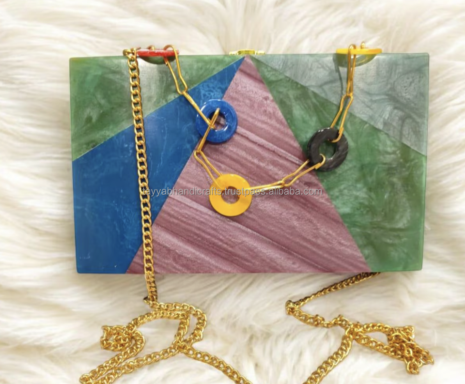 Evening Clutch Bag Resin Hand Purse Unique Design New Resin Multicolor Purse for Women