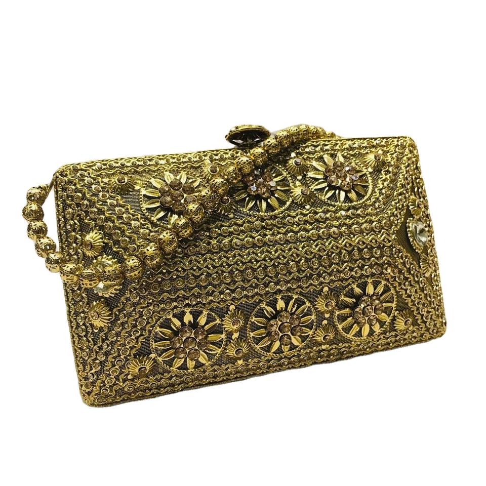 Pochette de soirée artisanale de créateur pour mariée, élégante, en métal, accessoire féminin, fabriquée à la main par des femmes