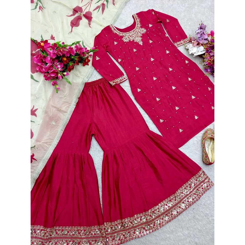 Robes de soirée Magnifique haut de soirée avec Sarara et Dupatta Moti Work