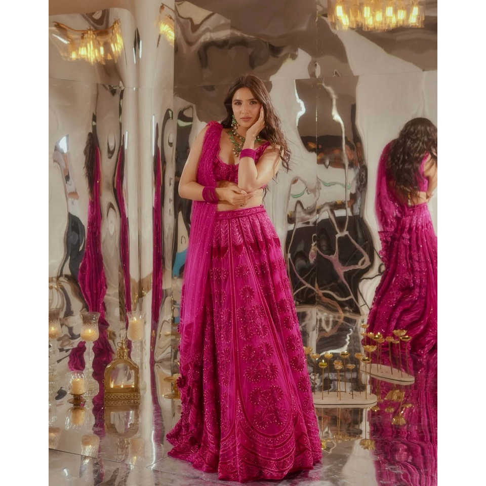Evening Party Wear Lehenga Choli with Thread Sequins Dori Work