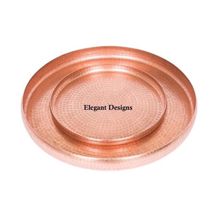 Plateau de service décoratif en cuivre de couleur pour événement, plateau de forme arrondie fait à la main, plat de service décoratif en cuivre d'excellente qualité