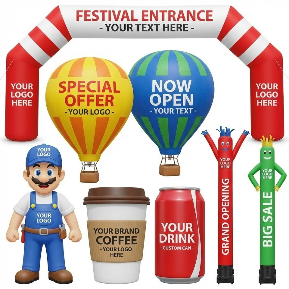 Ensemble de Structures Gonflables Publicitaires pour Événements : Arche Gonflable et Air Dancer Combo pour Promotion Commerciale et Décoration d'Activités