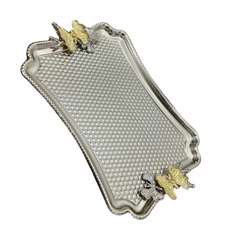 Décor de mariage d'événement plateau de service plateau de bonbons à biscuits plateau élégant avec poignée de papillons en or pièce maîtresse