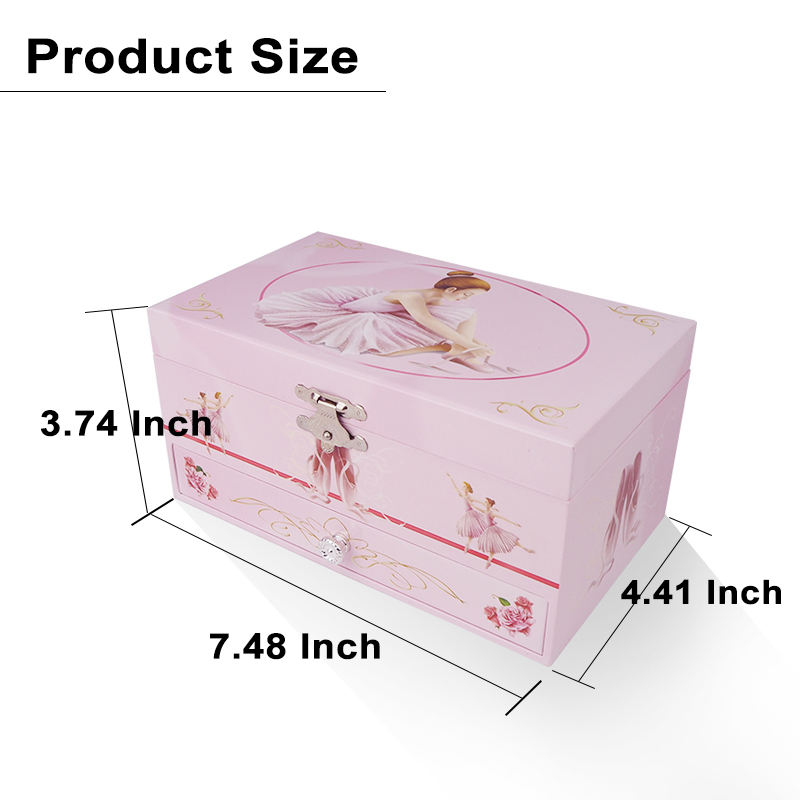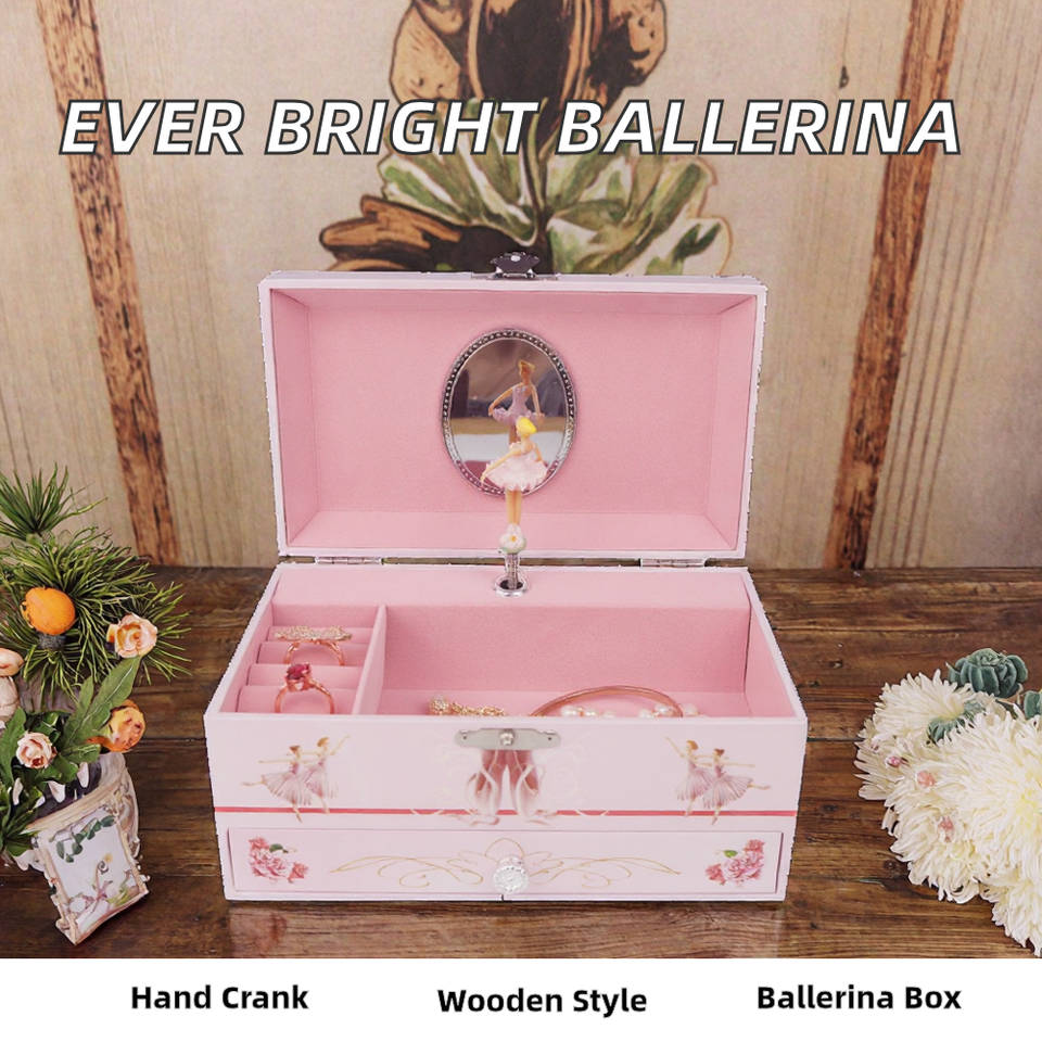Boîte à musique en bois rectangulaire à manivelle, avec figurine de ballerine rotative, pour bijoux, durée sonore 120 secondes, Ever Bright Beauty