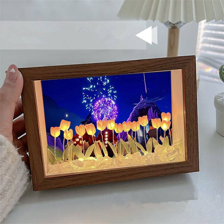 Handmade DIY Tulips Mirror Lamp Free Custom Photos Frame light