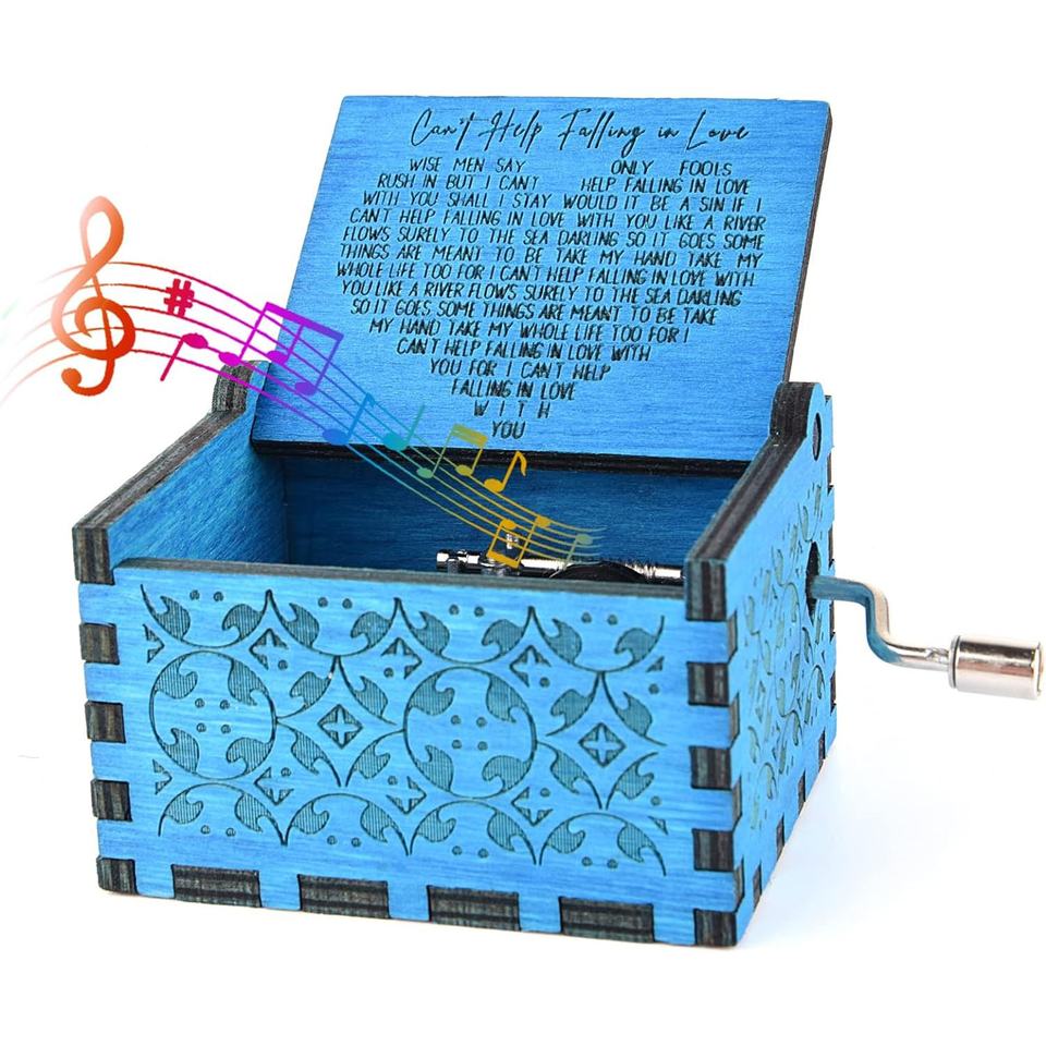 Ever Bright Mini Boîte à musique à manivelle Carrousel carré en bois avec fonction rotative Cadeaux de vacances pour tomber amoureux