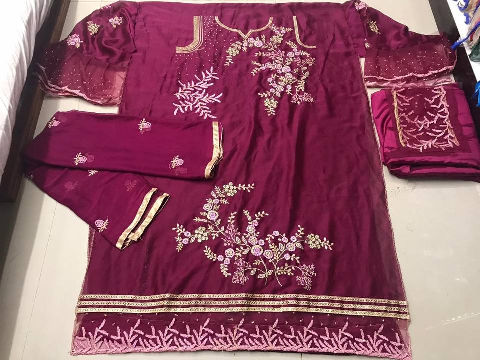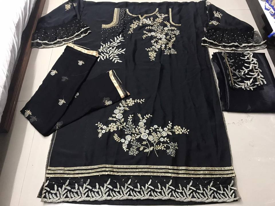 Nom du produit:À feuilles persistantes Conception Satin Georgette Salwar Kameez Et Dupatta