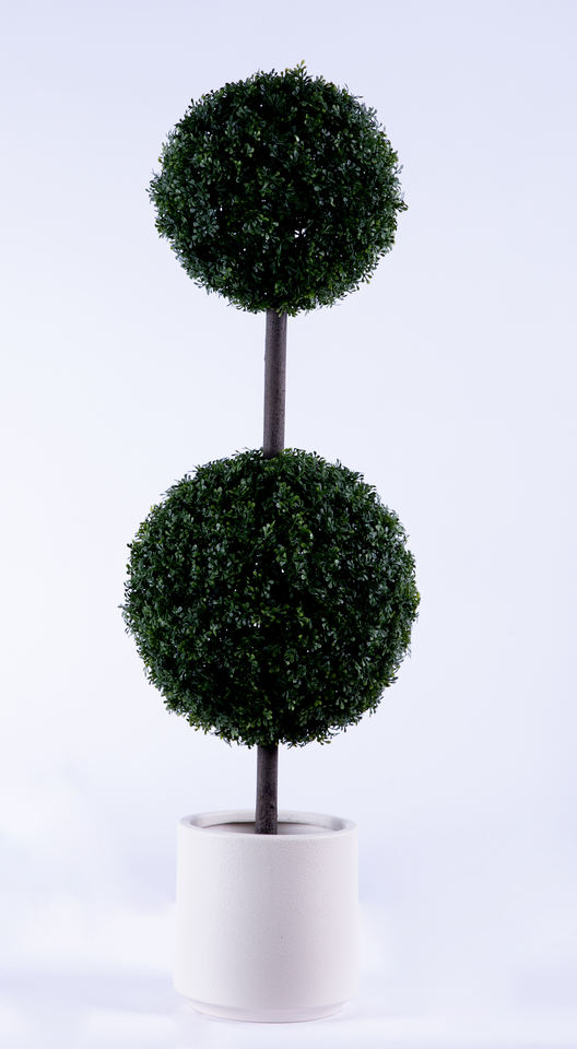 Décoration de jardin à feuilles persistantes feuille artificielle Double boule d'herbe avec Pot en plastique ornements d'extérieur décoration de plantes artificielles