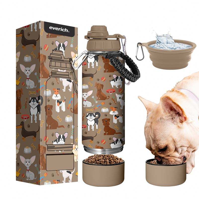 Bouteille d'eau portable pour chien Everich 3 en 1 avec motif personnalisé, double paroi en acier inoxydable, avec bol pour chien pour les voyages en plein air
