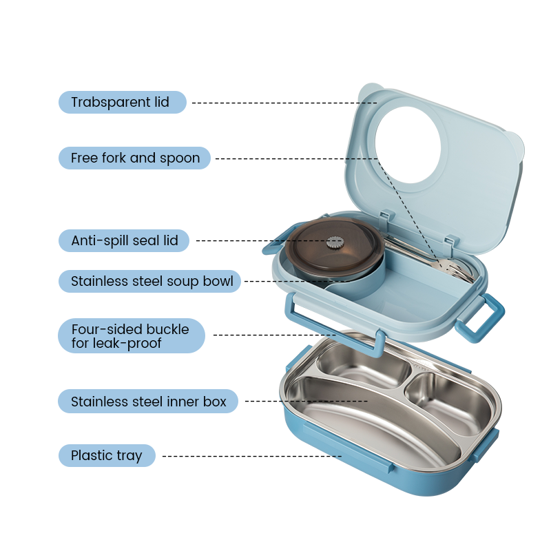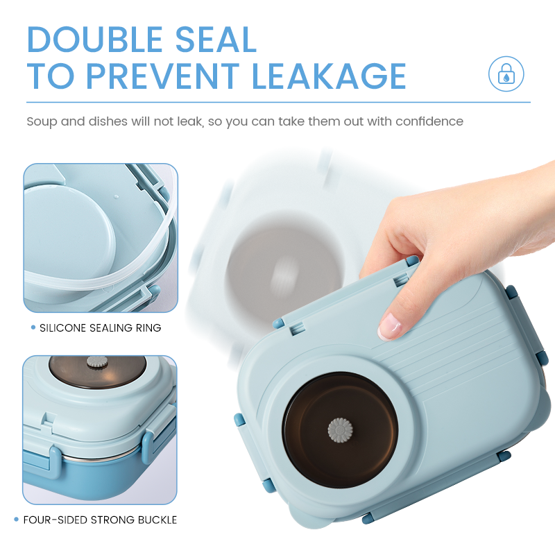 Everich Boîte à bento 1200ML avec logo personnalisé Boîte à lunch pour adultes avec bol à soupe, cloison et fourchette et cuillère gratuites pour adultes hommes femmes