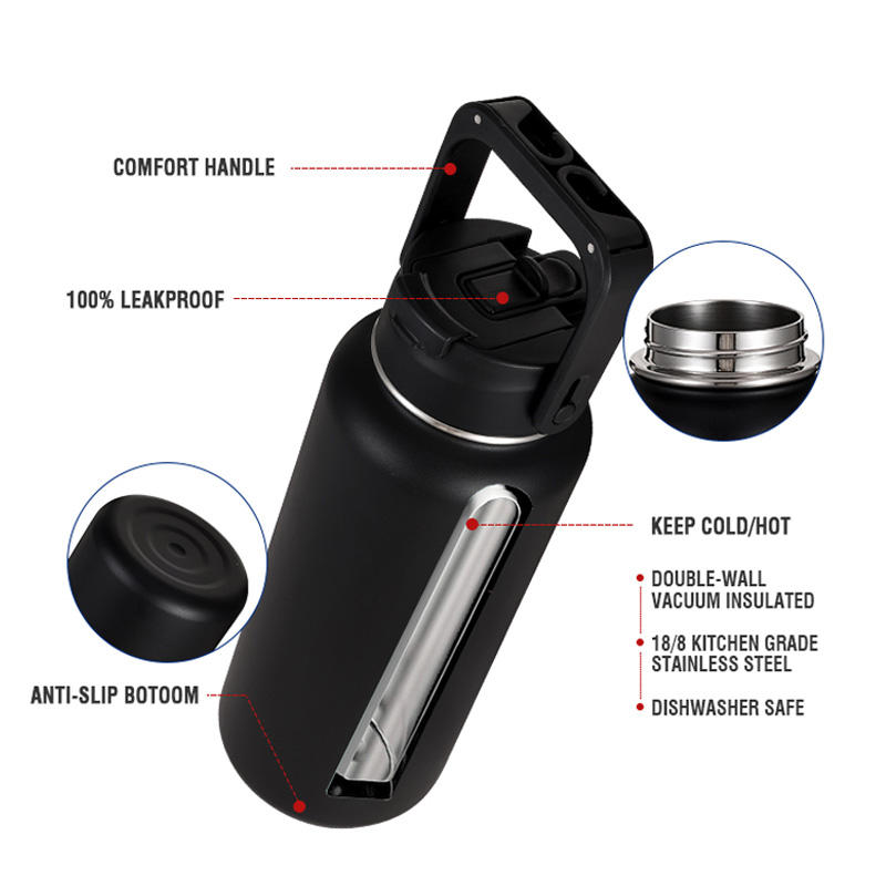 Everich Bouteille d'eau à injection sous vide à double paroi de 32oz en acier inoxydable avec couvercle à poignée 2 en 1 avec crochet pratique pour l'extérieur