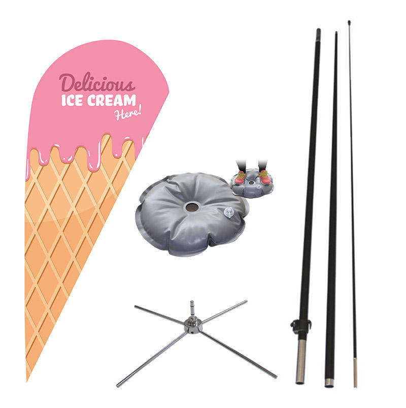 Drapeau de café en plumes publicitaires personnalisées avec pointe et baseNom du produit