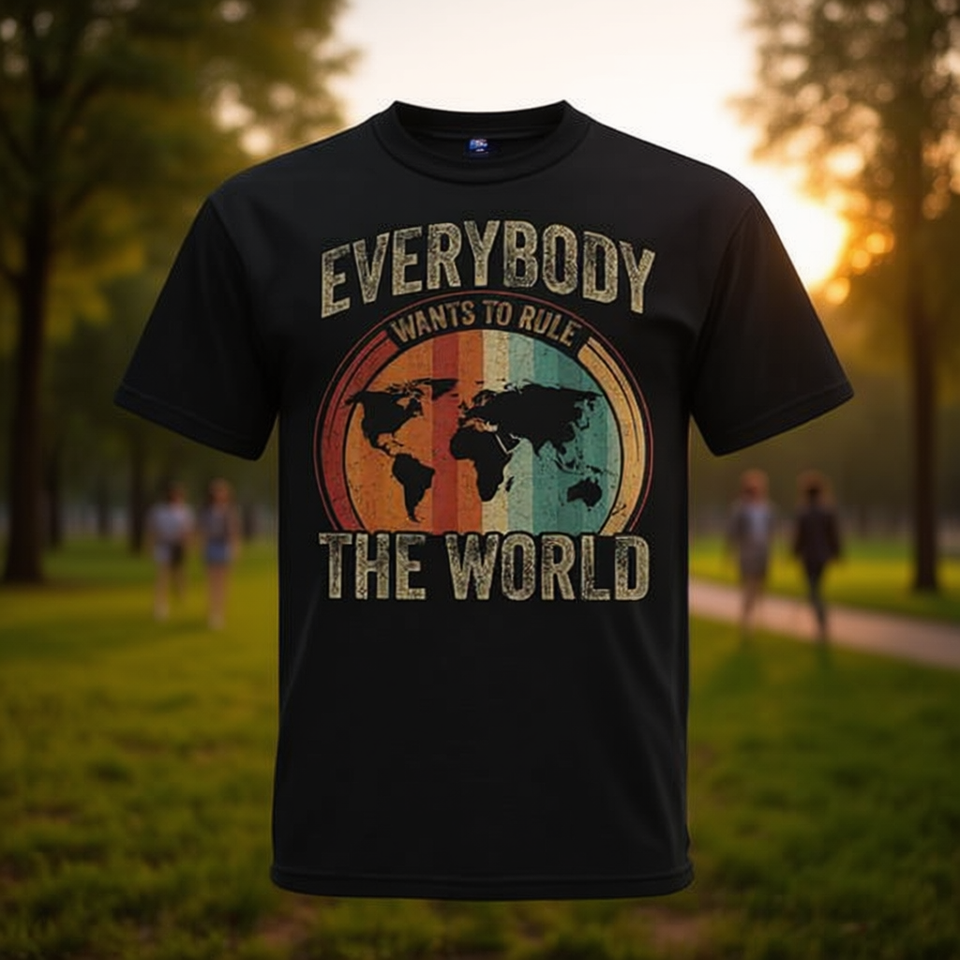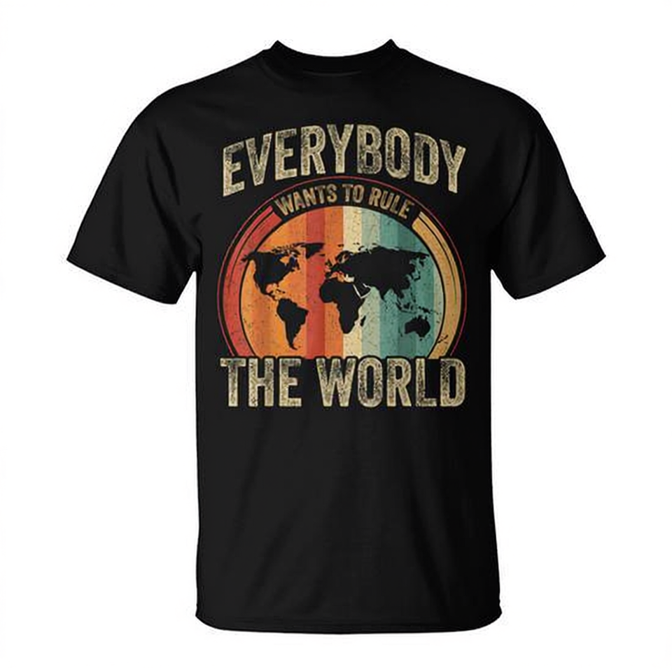 Tout le monde veut régner sur le monde, t-shirt vintage noir, taille adulte unisexe
