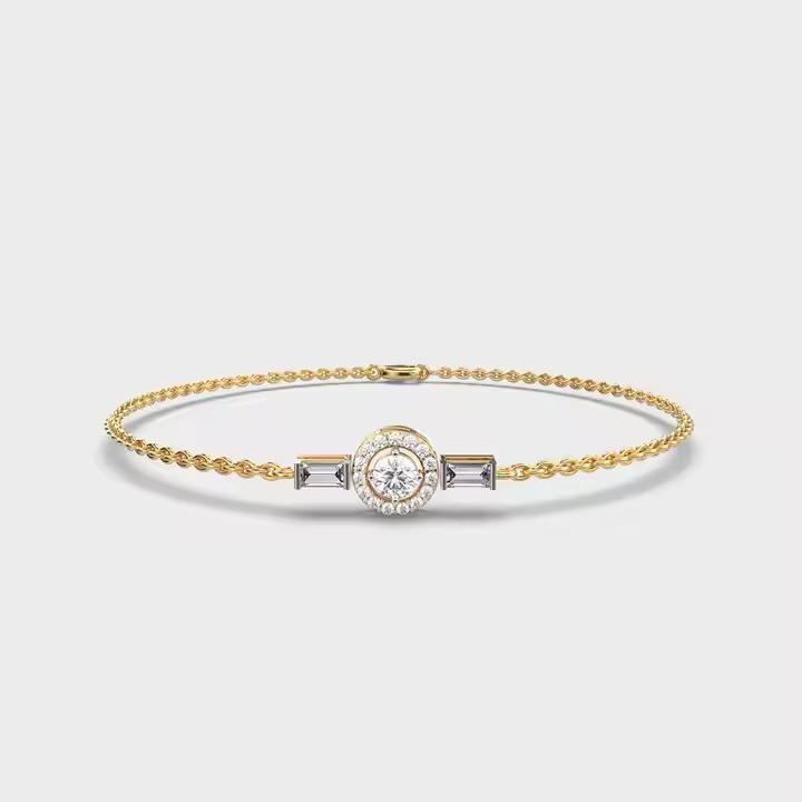 Everyday round and Baguette Moissanite Bracelet Elegant and Versatile jewelry for girls