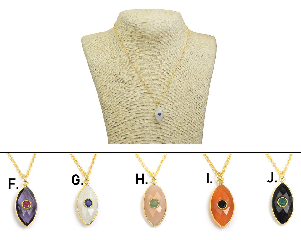 Collier pendentif mauvais œil de pierres précieuses multi