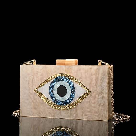 Bag & Case Features:Evil Eye Clutch with sling chain
