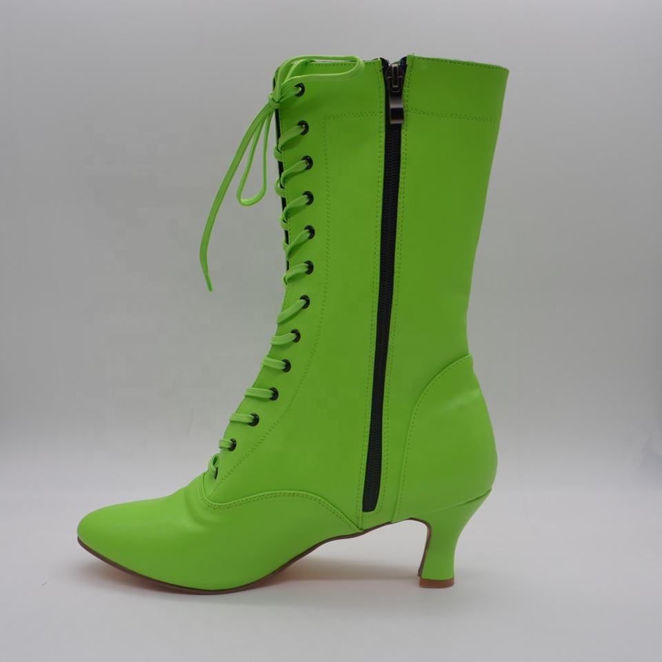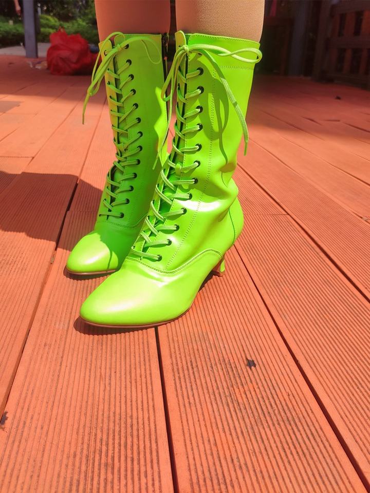 Evkoodance FLG240928G Fluorescent Green Cuban Heel Dance Boots Fashionable Jazz Salsa Latin Party Shoes for Women Used for Dance