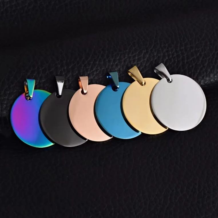 Plaque d'identification ronde en acier inoxydable Ewang, gravée au laser, souvenir en métal