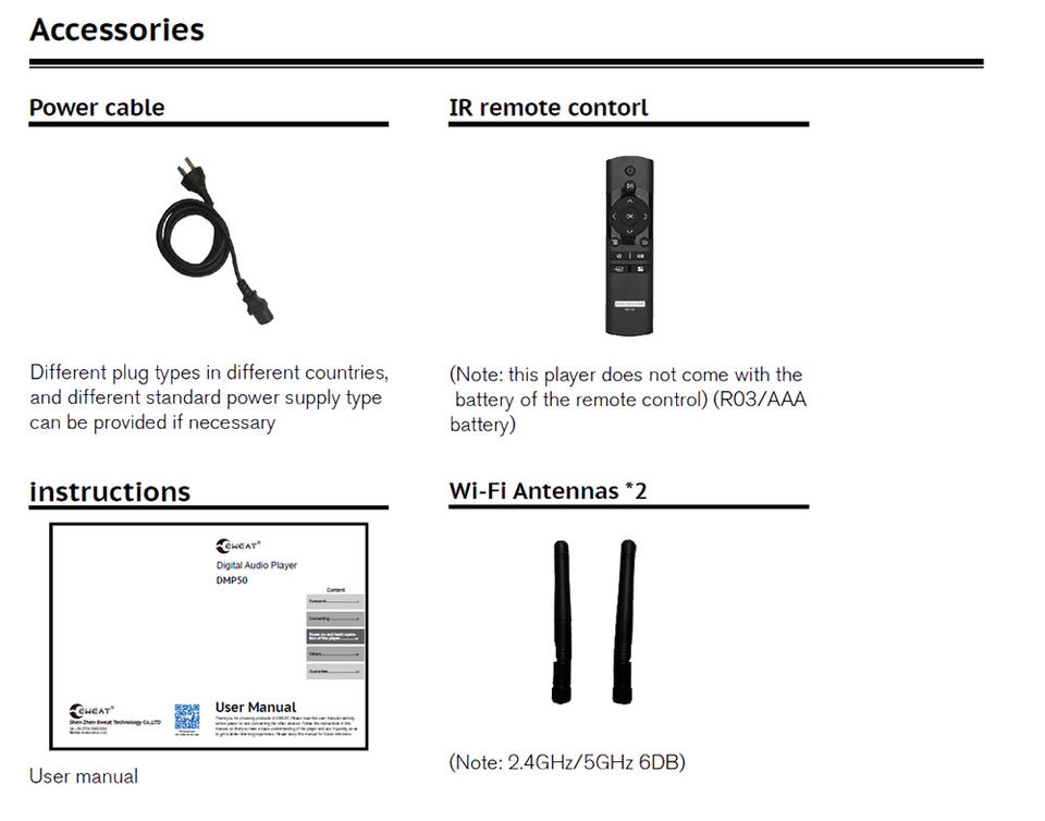 Eweat DMP50 Lecteur multimédia réseau stéréo DAC haute résolution, appareils de diffusion audio sans fil avec WiFi (gris)