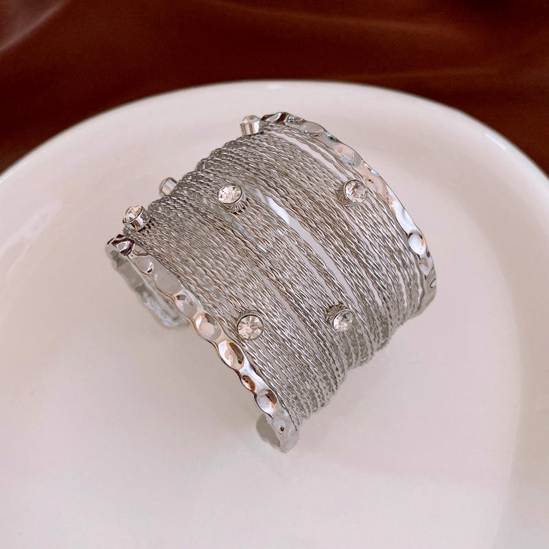 Bracelet manchette ouvert multicouche en alliage, style européen et américain, avec pierres naturelles incrustées, effet métal lourd exagéré, cadeau