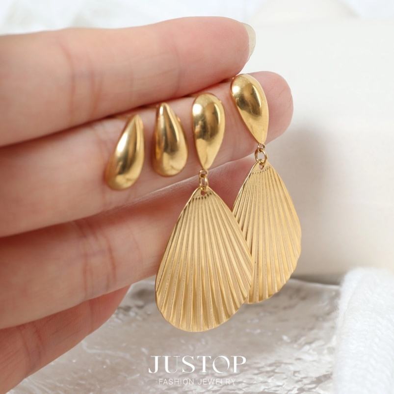 Bijoux Audacieux en Acier Inoxydable Or 18K, Boucles d'Oreilles Tendance pour Femmes avec Pendentifs Goutte d'Eau, Plante ou Plume Texturée, Idéales pour Fêtes