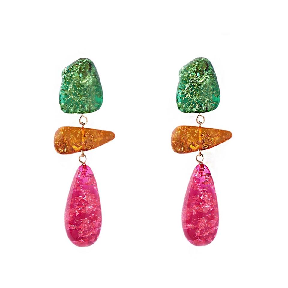 Boucles d'oreilles de mode d'épissage géométrique irrégulier en résine colorée rétro exagérée